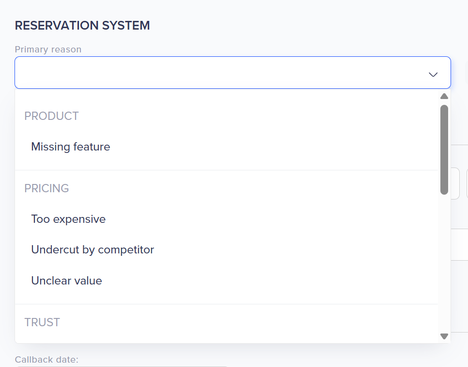 • Set appropriate callback timing (a deal lost to “Not the right time” needs different timing than one lost to “Missing feature”)