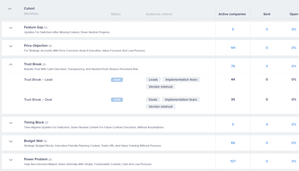 Sometimes one follow-up call isn’t enough. Rizer lets you set up email workflows that keep recycled contacts engaged over months. You can share product updates, helpful content, and check-ins — all targeted to their specific situation since you know exactly why they didn’t buy.