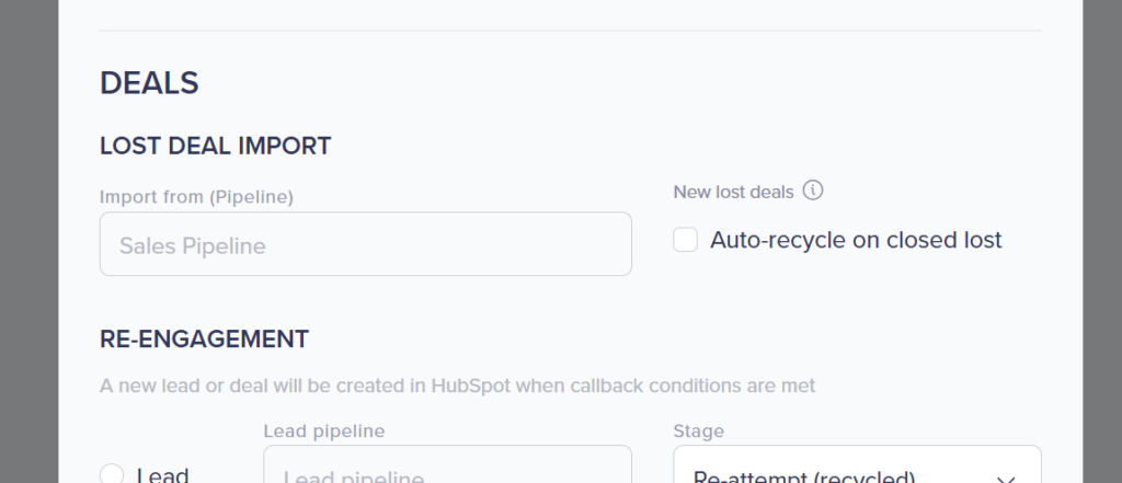 When a deal is ready for callback and you decide to pursue it, re-engagement is how you create a new opportunity in HubSpot.