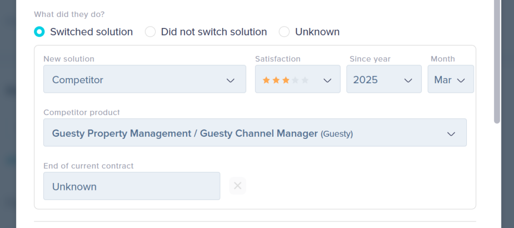 If a competitor won the deal, capture that here. This section has several fields: