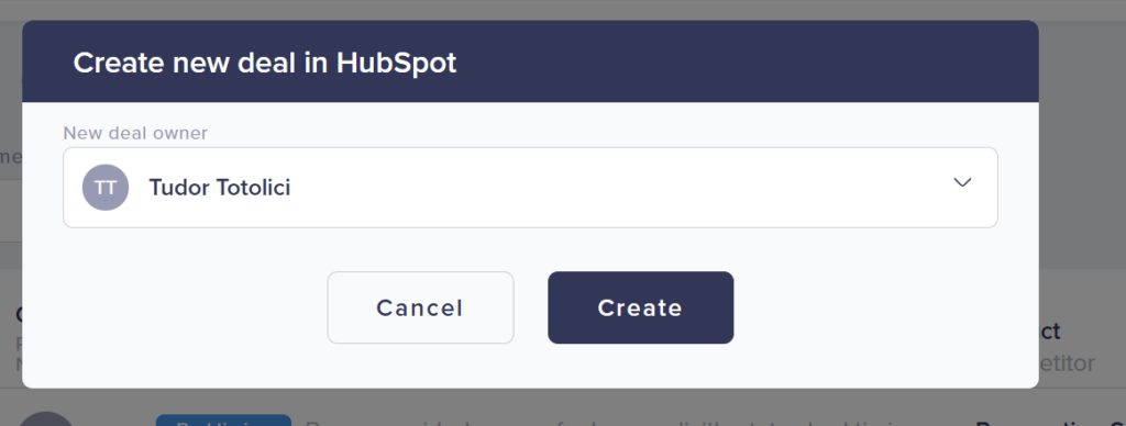 When you re-engage a recycled deal, you can choose to create either a lead or a deal in HubSpot. When you re-engage a recycled lead, Rizer creates a new lead.
