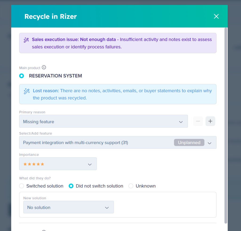 Feature gap data gets captured when you recycle a deal. Here’s how to record it properly.